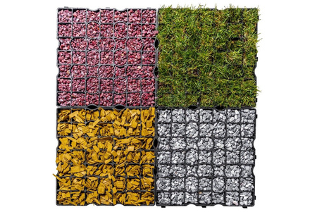 Kratę trawnikową Inovgreen można wypełnić grysem, żwirem bądź ziemią i zasiać trawą w zależności od potrzeb. Przykłady poniżej.
